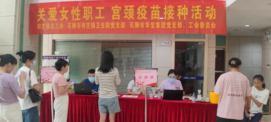 為更好地履行華寶集團(tuán)黨支部和祥芝鎮(zhèn)衛(wèi)生院黨建共建協(xié)議,落實(shí)祥芝鎮(zhèn)衛(wèi)生院家庭醫(yī)生簽約協(xié)議,6月23日祥芝鎮(zhèn)衛(wèi)生院為華寶集團(tuán)80余位婦女職工提供2價(jià)宮頸癌疫苗上門注射服務(wù),為華寶集團(tuán)女職工的健康保駕護(hù)航,也更好地發(fā)揮華寶集團(tuán)黨支部和工會(huì)關(guān)愛婦女職工作用。 在我國(guó),宮頸癌是第二大女性惡性腫瘤,每年新發(fā)病例11萬左右??芍^不折不扣的"紅顏殺手"。不過幸運(yùn)的是,宮頸癌是目前唯一病因明確、可防可控的癌癥。因此做好疾病科普,讓大家做好預(yù)防措施,能夠有效預(yù)防宮頸癌。