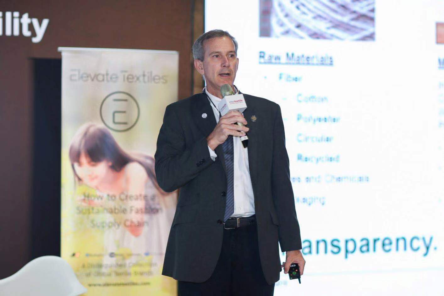 環境、健康、安全和可持續發展副總裁—Jimmy Summers先生在論壇上提出:到2025年,Elevate Textiles將在三個關鍵環境領域(原料纖維、水和溫室氣體)樹立可持續發展的卓越里程碑。