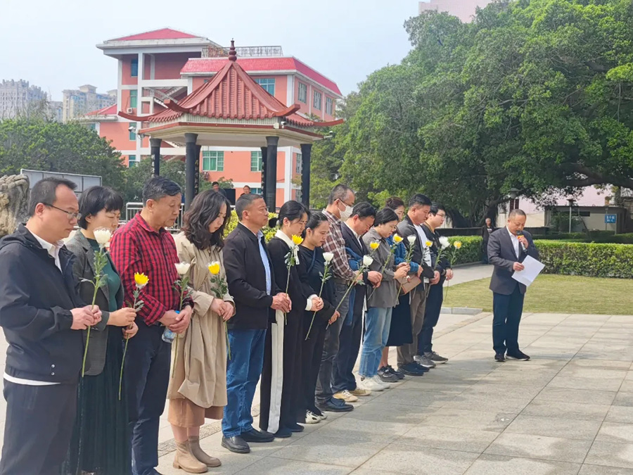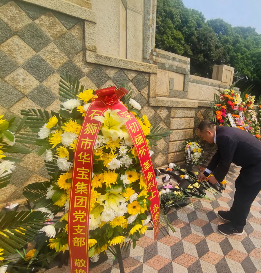 清晨,陽光灑在陵園的大地上,映照著烈士們不朽的英名。華寶集團的黨員整齊列隊,肅立在烈士紀念碑前,在沉痛的哀樂聲中向烈士們深深鞠了三躬。